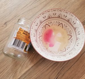 - Sobald das Etikett entfernt ist, kannst du eventuelle Kleberückstände auf dem Glas oder der Flasche mit der Paste abreiben. Verwende den Schwamm oder den weichen Lappen, um die Oberfläche zu reinigen.