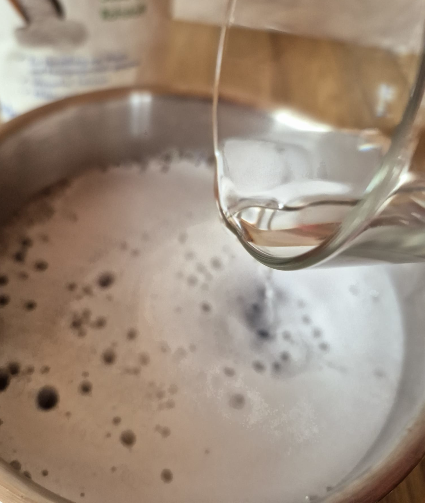 - Waschsoda einrühren, bis es sich komplett auflöst.